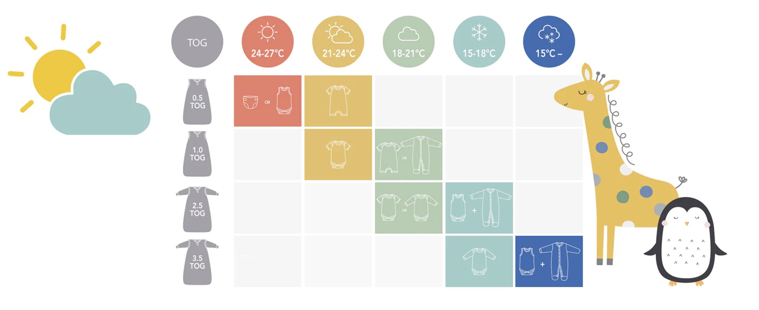 C'est là que le concept de TOG entre en jeu. Le TOG est une unité de mesure qui indique le niveau d'isolation thermique d'un vêtement ou d'une literie. Il vous permettra de choisir les vêtements appropriés pour que votre enfant n’ai ni trop chaud, ni trop froid.
